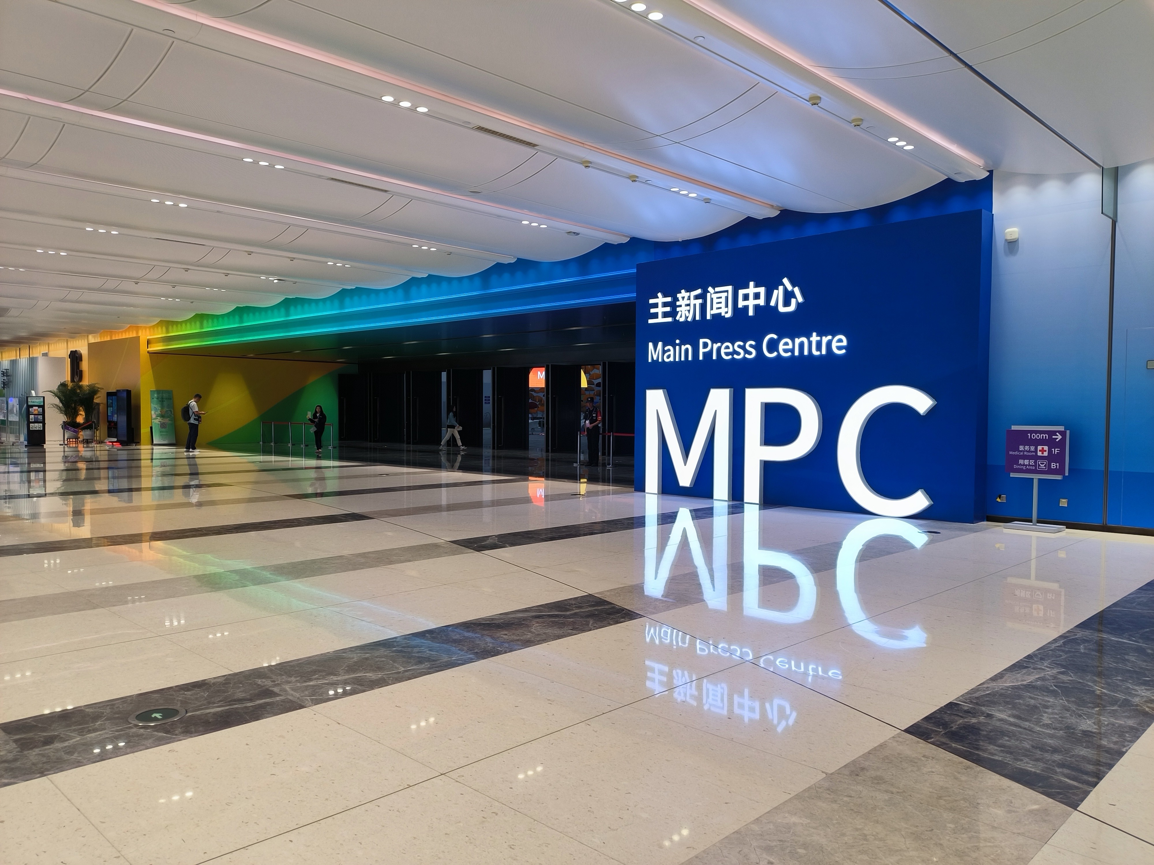 主新闻中心明亮宽敞,内部划分为文字记者、摄影记者工作区等。工作间两侧还设置了电子储物柜;MPC的大屏幕,由三块大屏拼接而成,赛时展现各场馆实时比赛画面、比赛公告、金牌榜等信息,这里就是注册媒体生产“新闻大餐”的大本营。