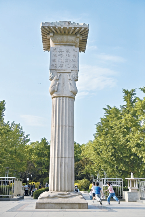 如今北京西南二环广安门以北护城河西岸的滨河公园内(辽、金时期宫城的中轴线上),矗立着一座高大的蓟城纪念柱,是为纪念北京建城3040周年而建,柱上榜文写道:“北京城区,肇始斯地,其时惟周,其名曰蓟。”大致意思是说,这里乃北京城市发源地,起始于周朝,那时名字唤作蓟。
