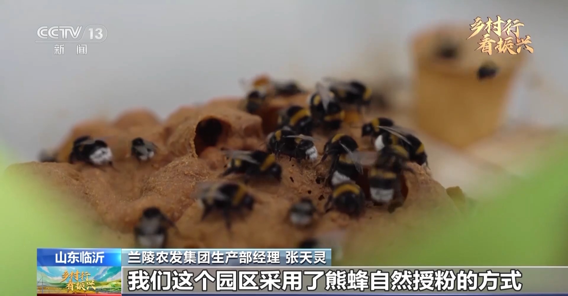 兰陵农发集团生产部经理 张天灵:这是熊蜂,它可比蜜蜂会授粉多了,它的采集力和适应性更强。我们这个园区采用了熊蜂自然授粉的方式,提升了授粉效率,从而改善了西红柿的品相和口感。