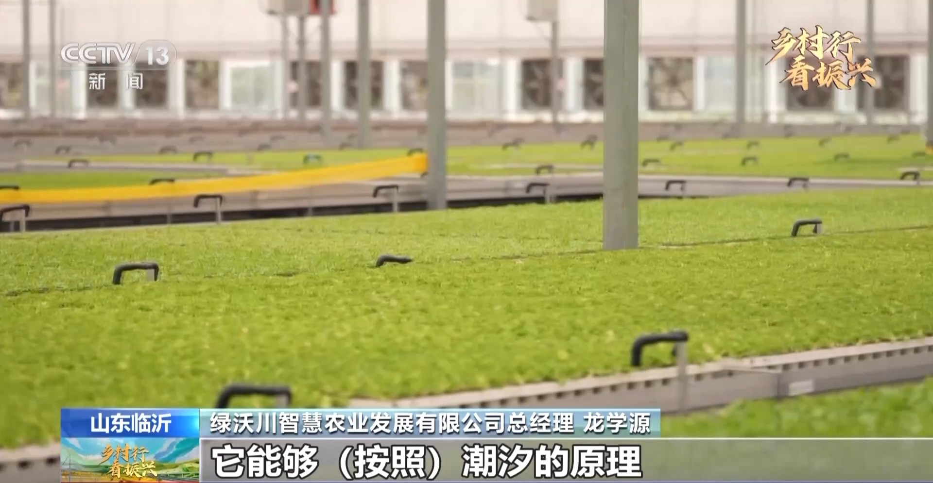 山东绿沃川智慧农业发展有限公司总经理 龙学源:这个区域叫潮汐苗床,它能够按照潮汐的原理像潮涨潮落一样,把足够的养分与它需求的东西给到位。这样子生长出来的小苗每棵都是优质的草苗。