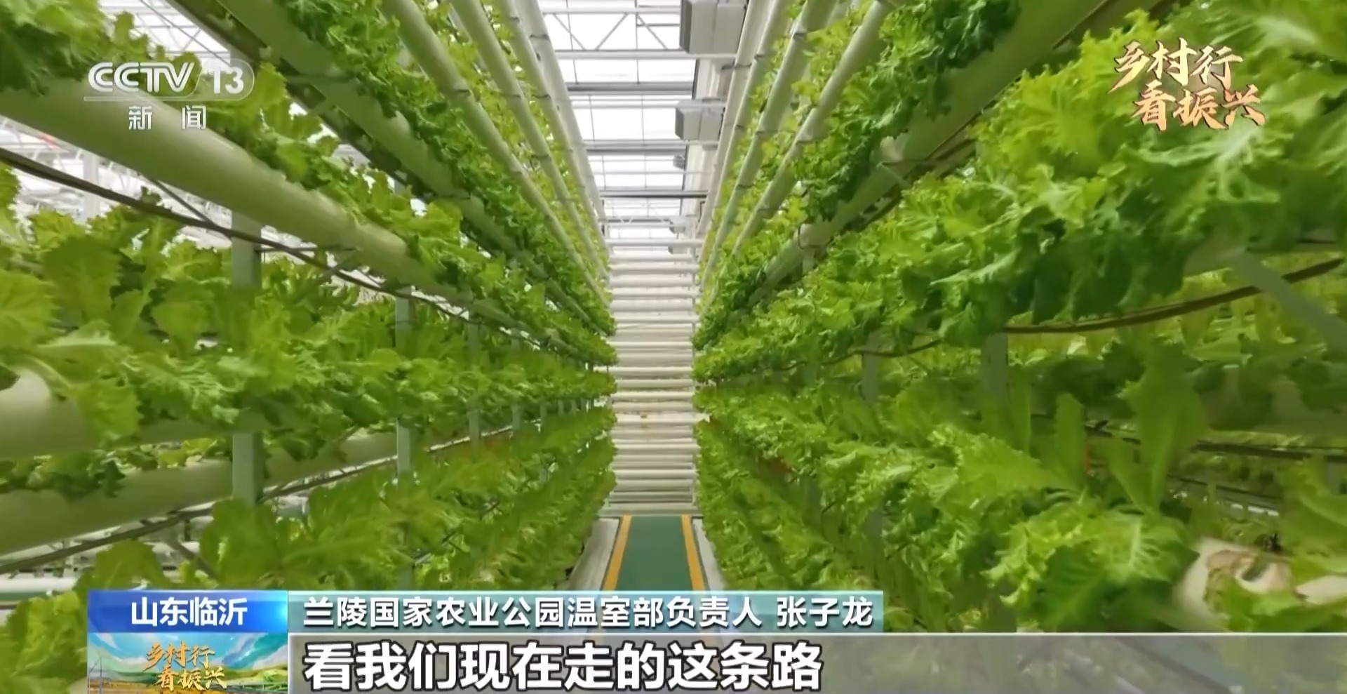 兰陵国家农业公园温室部负责人 张子龙:像我们这种立体管道种植首先可以节约空间,管道相对密闭可以更有效地利用水,营养液是可以循环利用的。看我们现在走的这条路,它叫作光伏补光道路, 别小瞧了这300米的路,它年发电量可以达到2万度,可以在阴雨天气或者光照不足的情况下持续为植物的生长补充光照,从而让植物长势良好。
