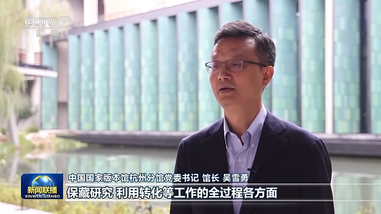 中国国家版本馆杭州分馆党委书记 馆长 吴雪勇:我们将把习近平文化思想贯穿于中华版本征集保护、保藏研究、利用转化等工作的全过程各方面,为把世界上唯一没有中断的文明继续传承下去,为建设中华民族现代文明贡献智慧和力量。