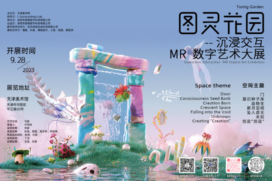 “图灵花园沉浸交互MR数字艺术大展灵感源于一位计算机科学与人工智能研究领域先驱,他的图灵测试提出了关于智能、意识与存在三者关系的思考。”天津美术馆馆长马驰介绍,我们利用空间算法识别技术、全息投影技术、人机交互技术、传感技术,将现实空间与虚拟空间相连通,使游客不再是第三视角的旁观者,而是可以自由穿梭虚实空间、体验多维互动、享受和创造数字艺术产品的参与者。