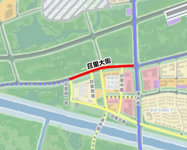 西起召里西一路,东至通济路,全长约0.7公里,按照城市主干路标准建设,红线宽50米。随路实施交通、照明、绿化、雨水、污水、给水、再生水等工程。