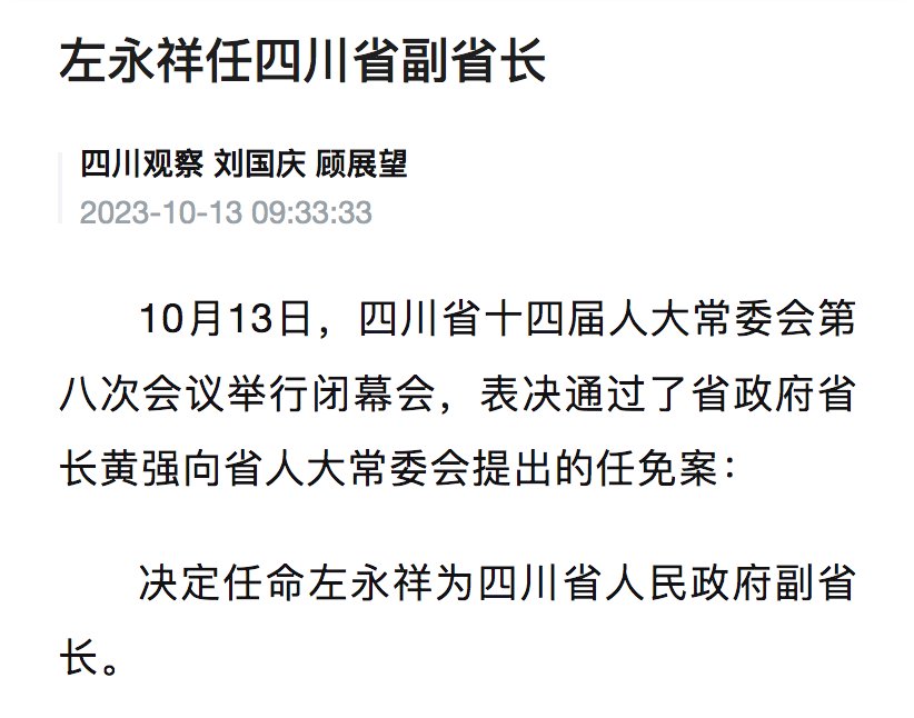 决定任命左永祥为四川省人民政府副省长。