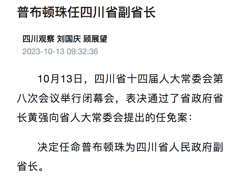 决定任命普布顿珠为四川省人民政府副省长。