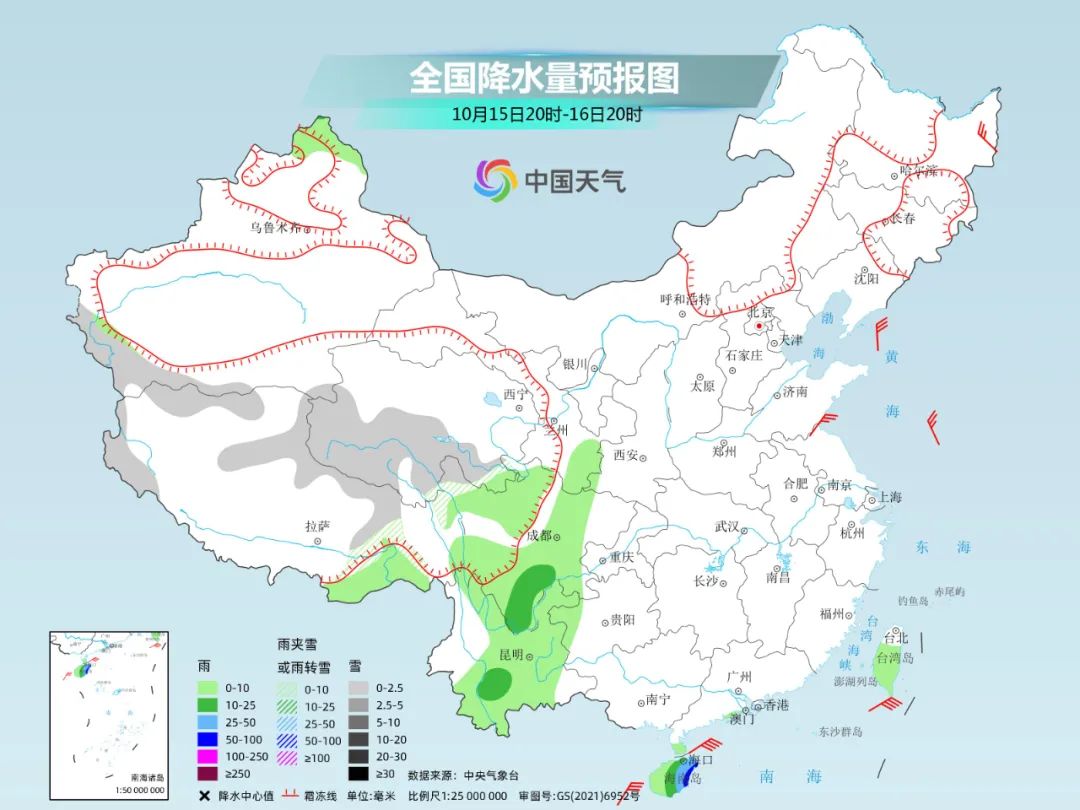 ● 新疆雨雪也将发展并伴随明显降温。今天夜间,新疆将会开启一轮雨雪天气过程,明后天为降水主要时段,也是降温最剧烈的两天,预计将有4~6级偏北风、阵风7-9级,气温累计下降6~10℃、部分地区降幅可达12℃以上,同时新疆西部沿山地区和北部有小到中雪或雨转雪天气,阿勒泰部分高海拔地区有大到暴雪。