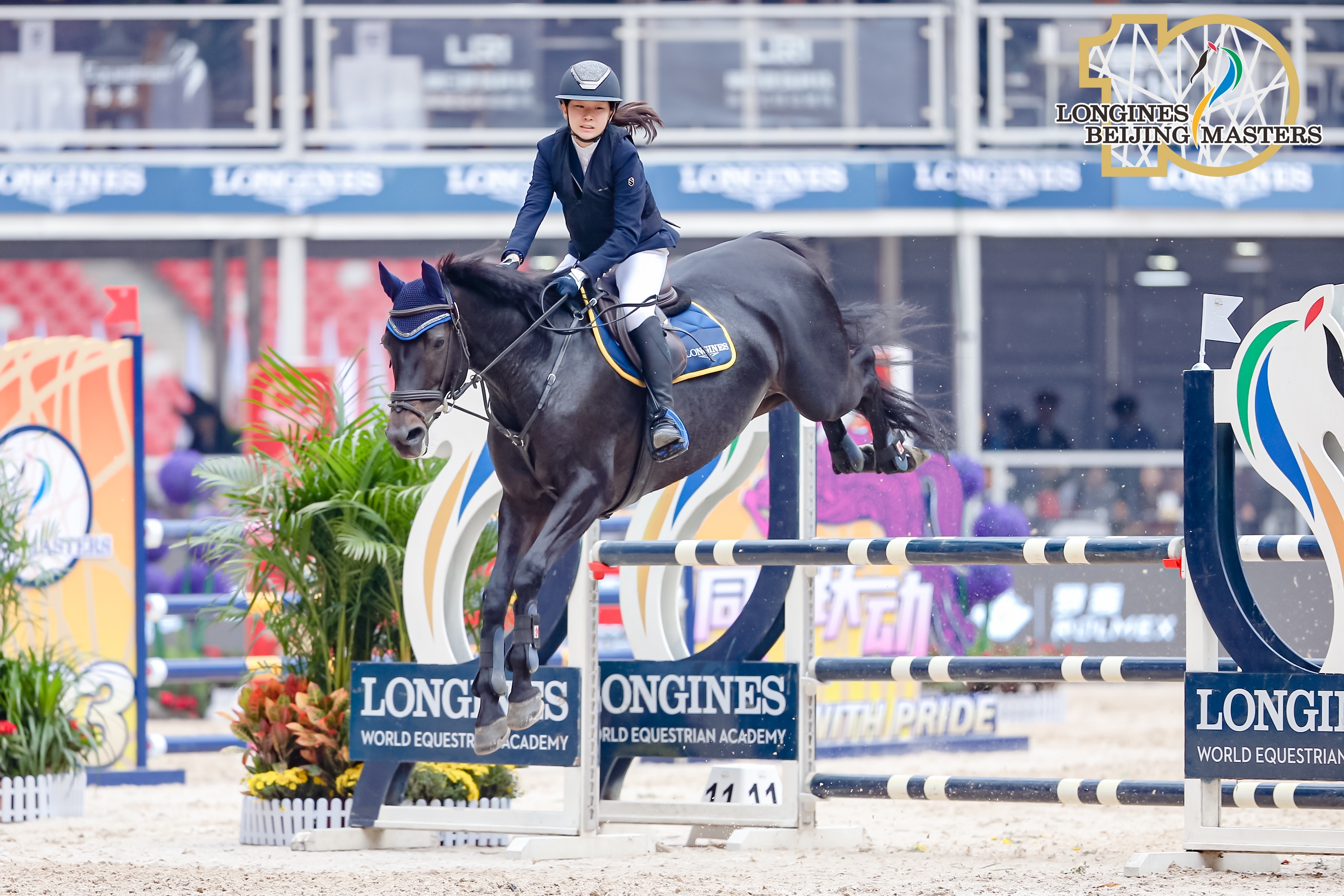 115CM级别的个人挑战赛决赛作为当日第三个比赛项目进行,46对人马组合进行决赛比拼,决赛的奖金不仅翻倍,冠军还能收获一块浪琴表。最终,进入附加赛的16对人马组合中,11对都再次获得0罚分。中国香港队的骑手肖竣元策骑“FUTRICIA VAN BEEK”以0罚分、用时31.48秒的惊艳表现夺得冠军。13岁的肖竣元说,自己八九岁的时候,就来鸟巢比过一次60CM级别赛。这次参赛,肖竣元说自己“就想拿个金牌回家会开心一点!”在如愿夺冠后,肖竣元还将功劳归于赛马和鸟巢体育场。