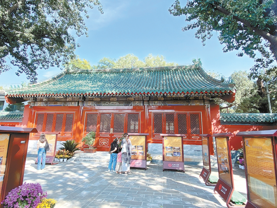 日坛公园绿树掩映,凉爽幽静。刚刚完成修缮的神厨神库院内正举办《遇见日坛——坛庙文化展》,不少游客正在驻足细看。