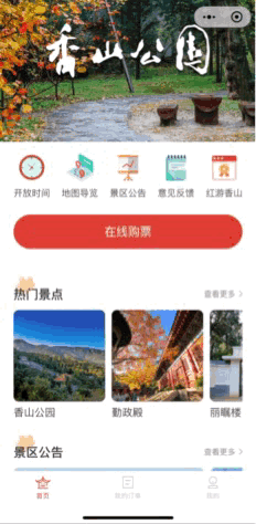 “香山公园”小程序购票方式