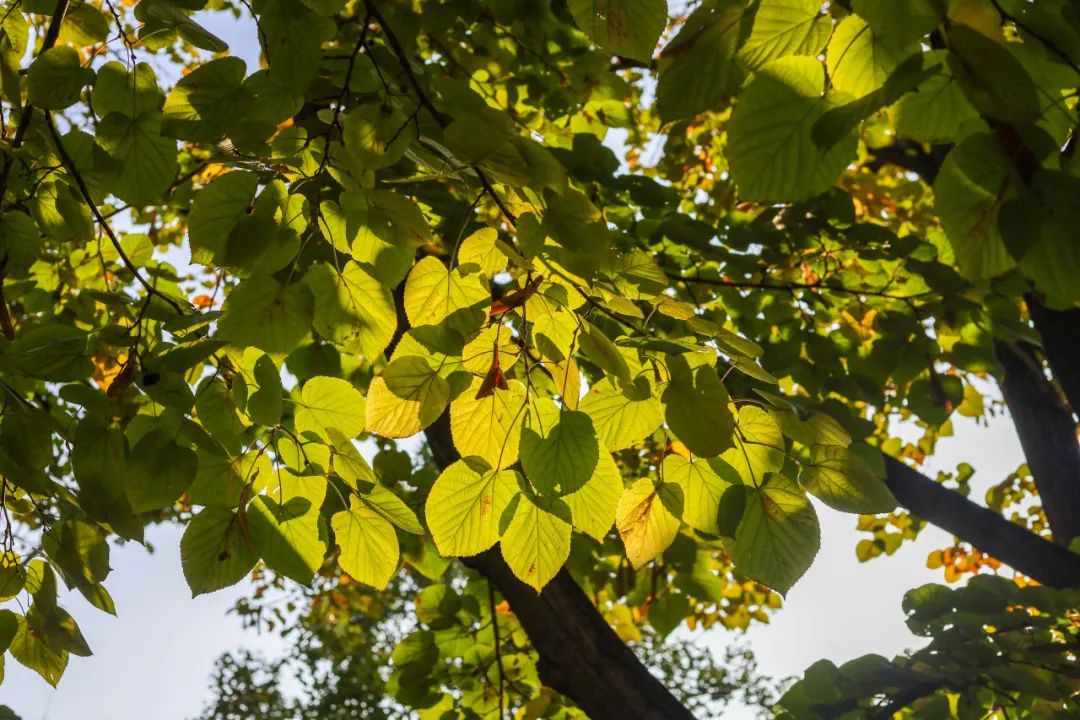金黄的叶片伴着阳光和微风