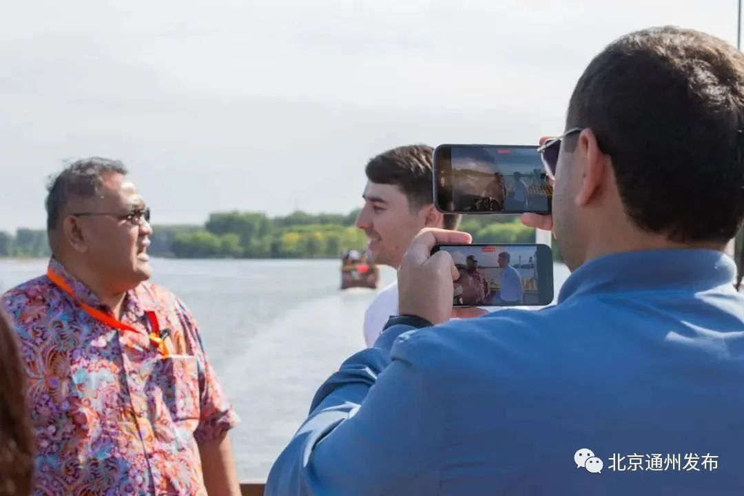 运河千年,碧波依旧。国际城市媒体参访团随后登上游船,在如画清波上感受运河文化,了解京杭大运河北京通州段的保护利用成果。