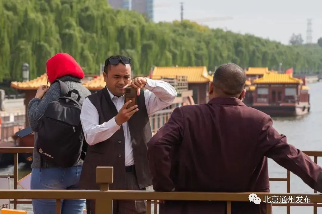 在燃灯塔下,各国记者实地了解京杭大运河的悠久历史,见证北京城市副中心高质量发展的新气象。