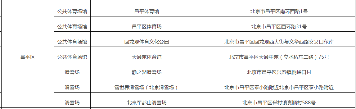 此次我区入选的七处大规模体育健身场所包括四处公共体育场馆和三处滑雪场,分别是:昌平体育馆、昌平区体育场、回龙观体育文化公园、天通苑体育馆、静之湖滑雪场、雪世界滑雪场(北京滑雪场)和北京军都山滑雪场,其中回龙观体育文化公园和天通苑体育馆位于回天地区。
