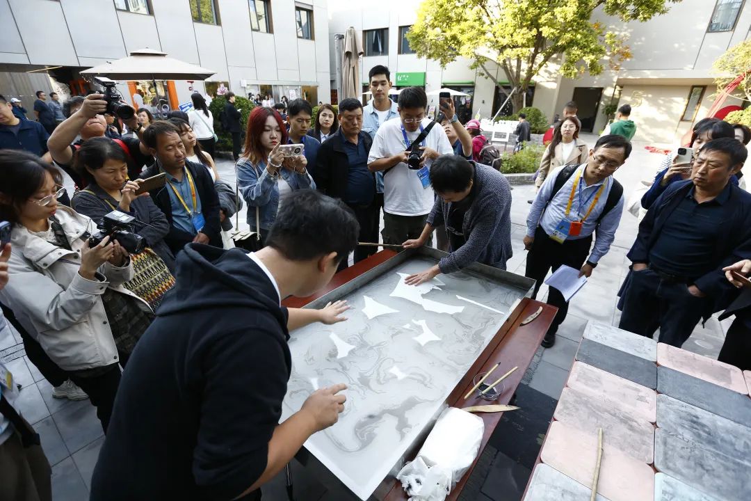 园区内含着许多“好逛”“好吃”“好玩”的特色商店。“abC艺术书展”的运营团队结合园区文化特色开设了“梦办OneiroSpace”复合艺术空间的首店;知名咖啡品牌Storyboard Coffee融合周边胡同风格特点,设计打造玉兰树下的“绿色咖啡厅”;传统手工纸工作室“我是楮先生”陈列着精心装裱的百余种中国传统手工纸样式,给人们提供了一个了解传统手工艺的绝佳场所……此外,“戏剧”是金台·共享际的一大特色,园区重点围绕小剧场展演空间为核心,充分激发创新创造活力,为青年戏剧工作者提供内容创作平台。采访现场,不少记者认真听取园区负责人的介绍,不时与商家互动并用镜头记录美好瞬间。