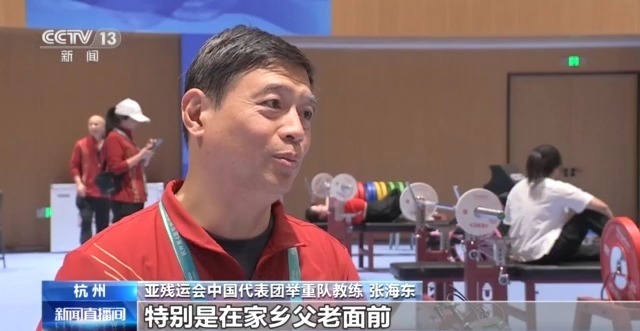 亚残运会中国代表团举重队教练 张海东:我们赛前的训练整体情况还是比较好的,发挥出了自己的水平,特别是在家乡父老面前,我们要为祖国争光。