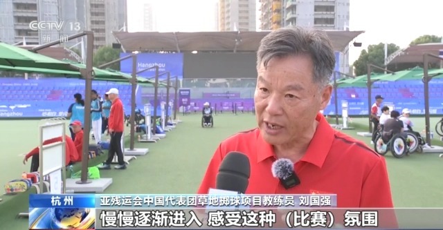 亚残运会中国代表团草地掷球项目教练员 刘国强:是为了让他们感受比赛氛围,从组队那天起,我们就想让国旗在这个赛场上升起。