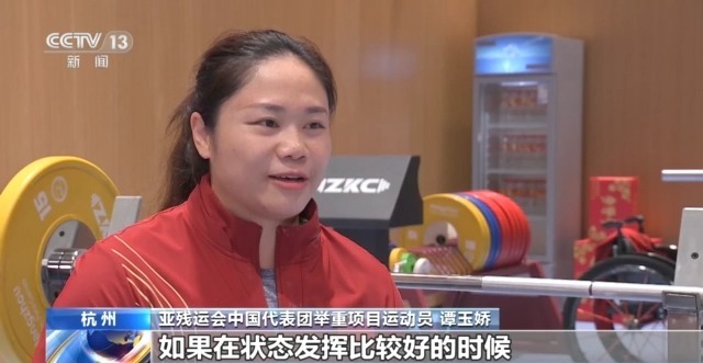 亚残运会中国代表团举重项目运动员 谭玉娇:这次比赛对我来说,首要目标肯定是拿下金牌。如果在状态发挥比较好的时候,我想去挑战一下自己保持了大概5年的世界纪录,我非常期待接下来的比赛。