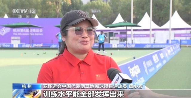亚残运会中国代表团草地掷球项目运动员 周小芳:训练水平能全部发挥出来,对自己有突破,对我来说已经很满足了。