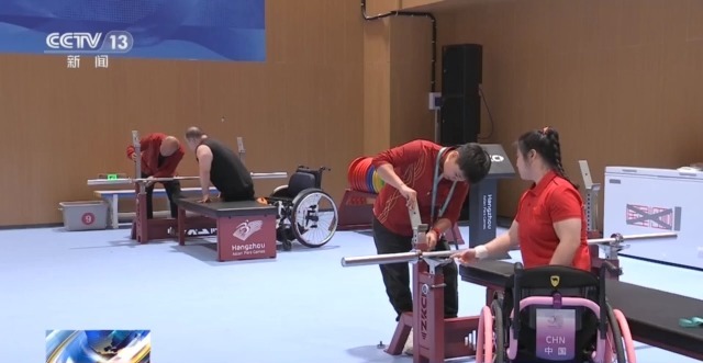 在萧山体育中心体育馆,开放训练首日迎来了中国、乌兹别克斯坦、新加坡等国家的近50名残疾举重运动员进行赛前适应性训练。