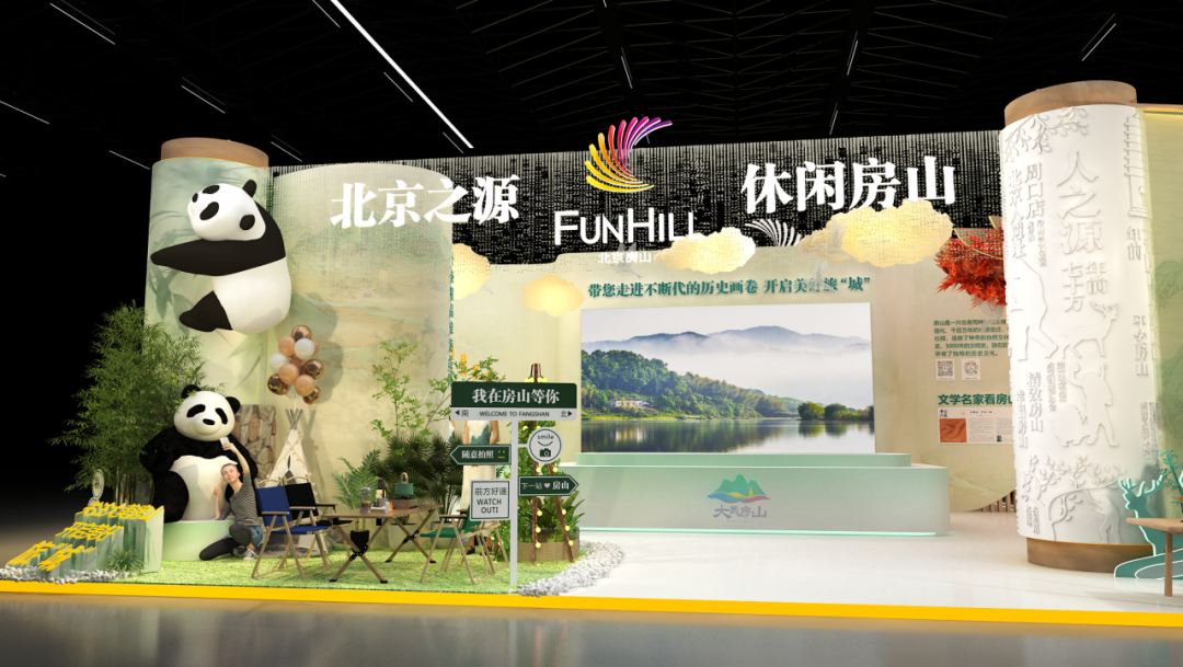 展区整体分为文旅资源及商品展示区、引流打卡区、非遗体验区、互动区。让观众置身大美房山的场景,感受房山文旅融合的魅力。此外,您还可以来展位前台领取“大美房山旅游手册”,并盖上不同景区的印章哦~