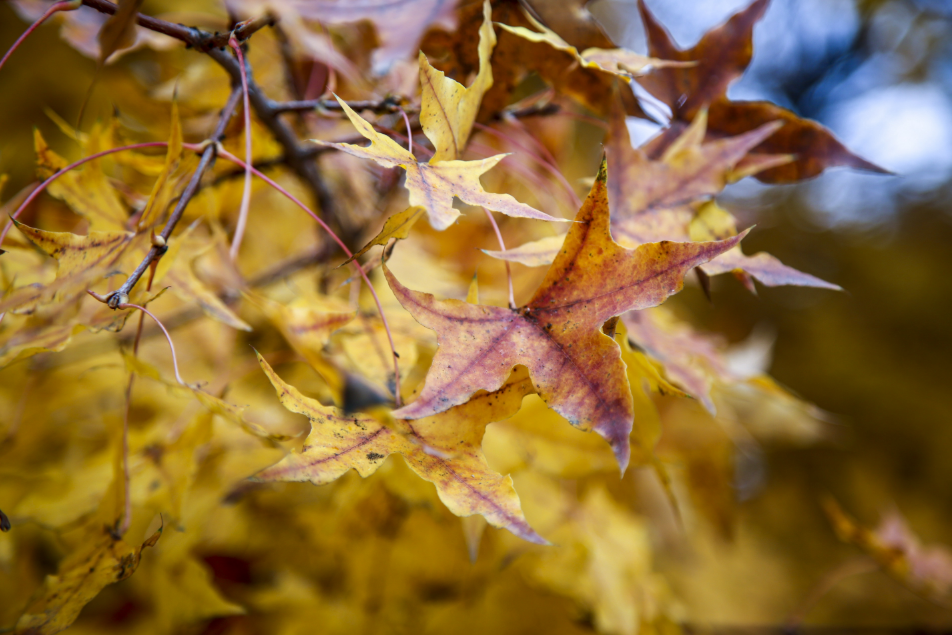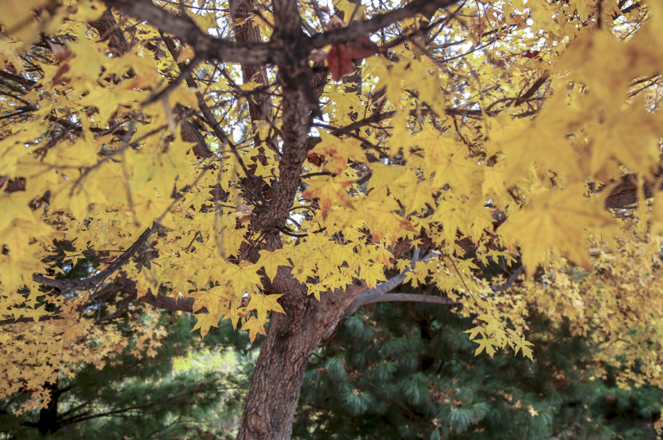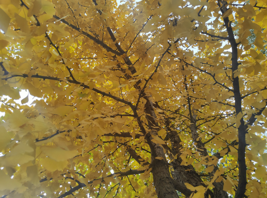 泛黄的秋叶浸染枝头