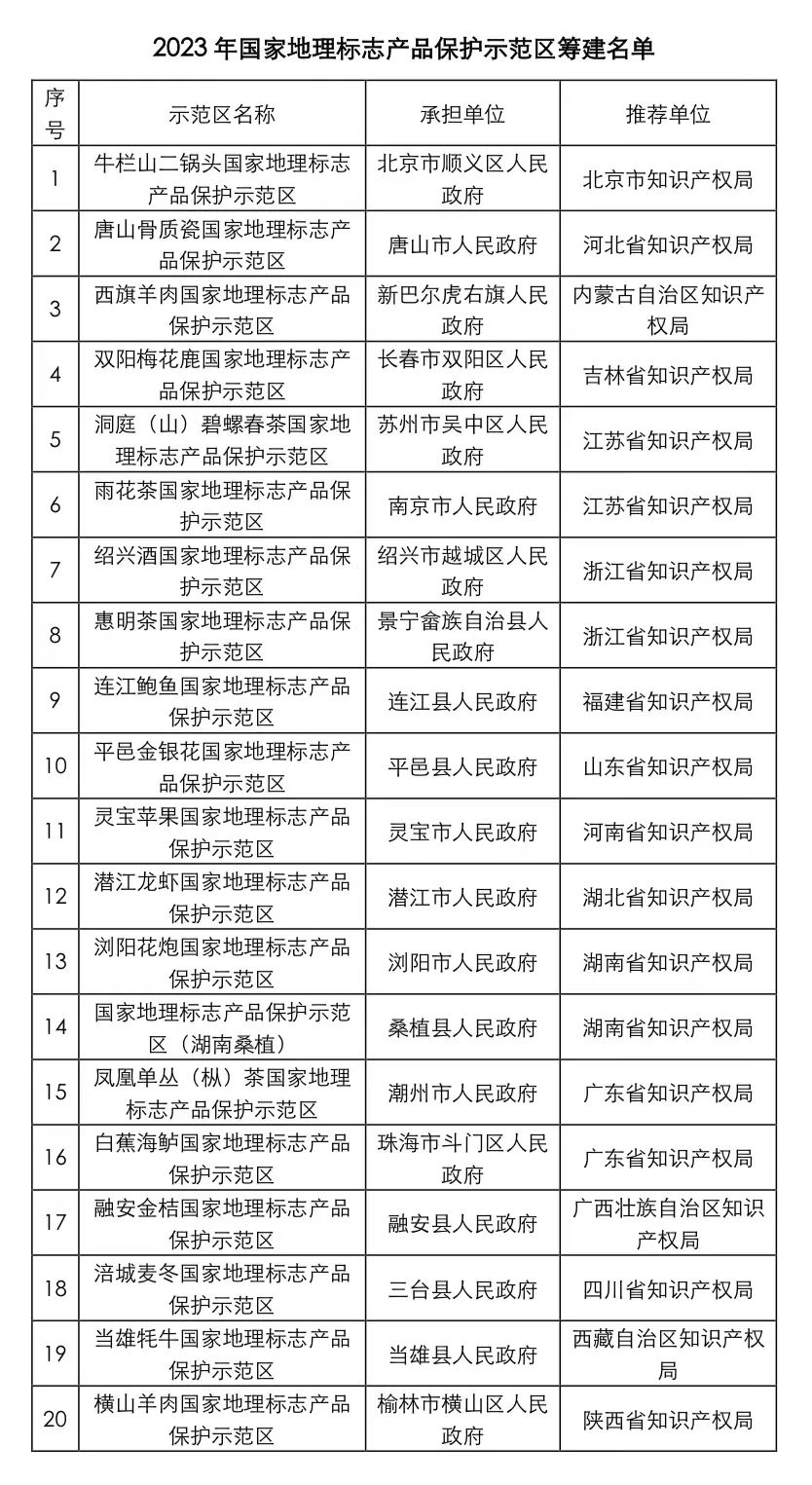 关于2023年国家地理标志产品保护示范区筹建名单的公示
