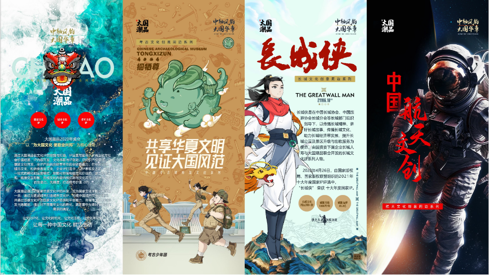 国潮创新、梦幻联动!与长城、中国航天、中国考古博物馆三项国家级IP文化符号进行联动,现场展出印章、组装模型、笔记本、抱枕、配饰等多项文创产品,通过新颖有趣的国潮文创,让年轻人和小朋友感受大国力量。