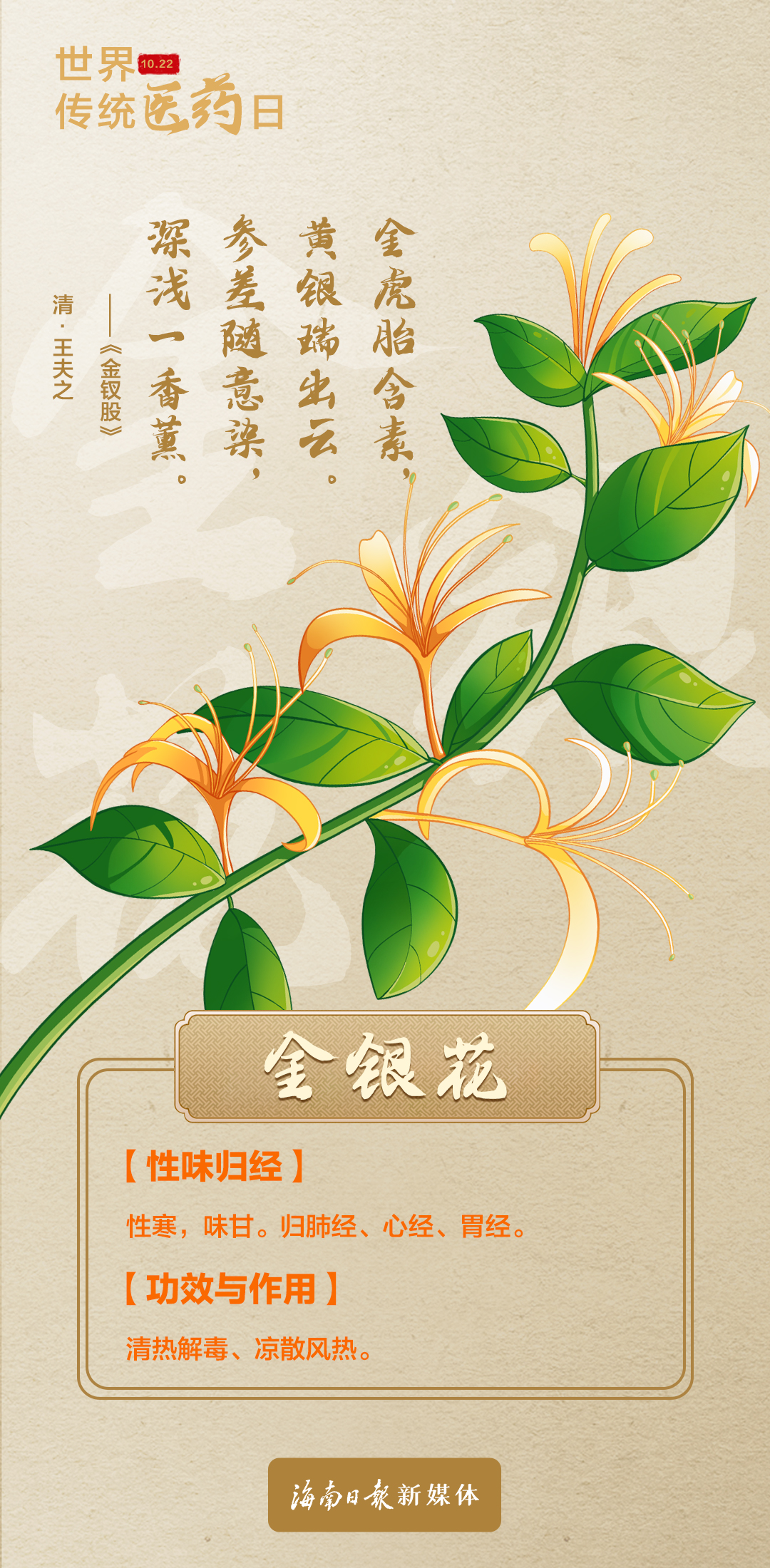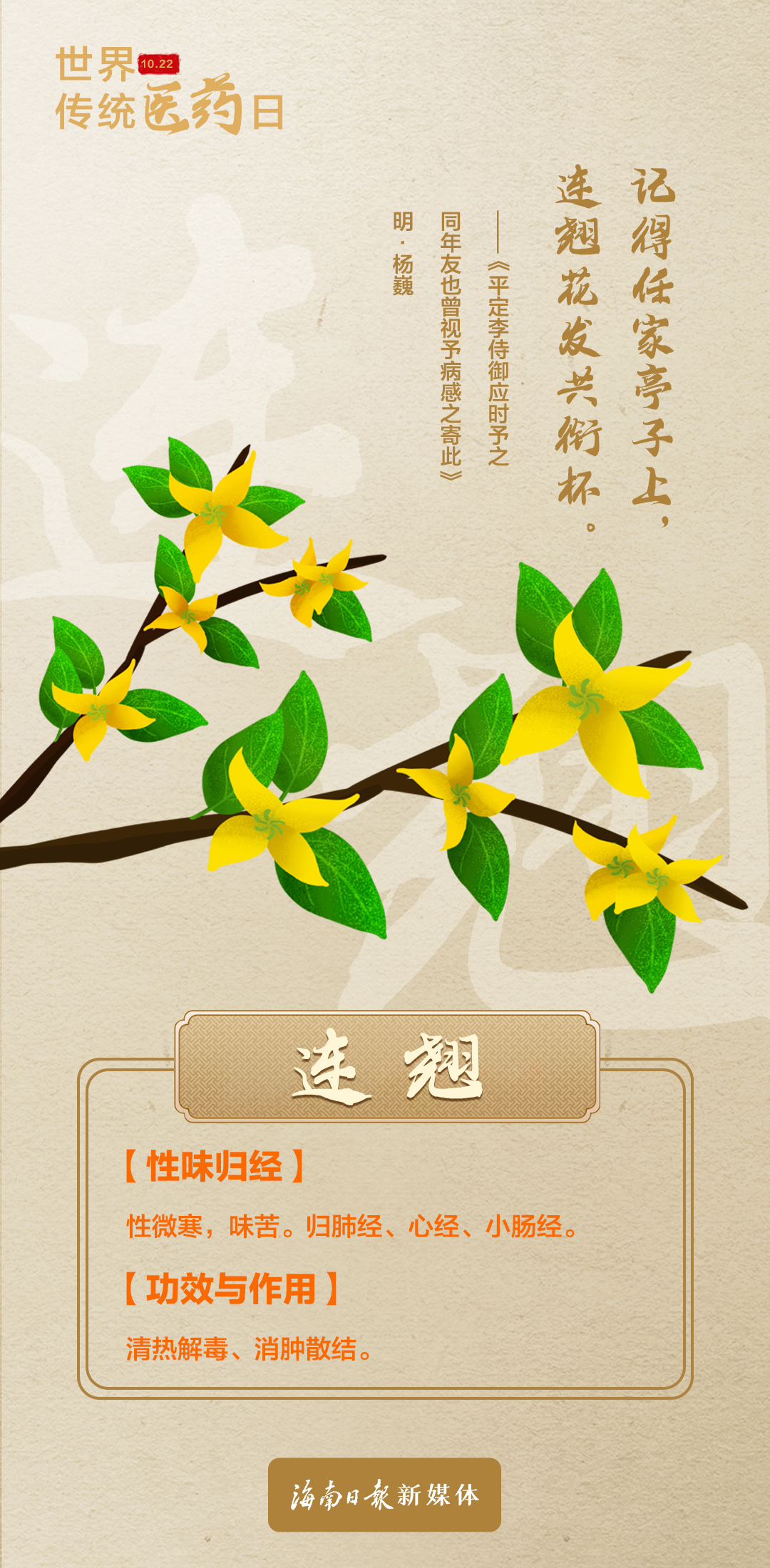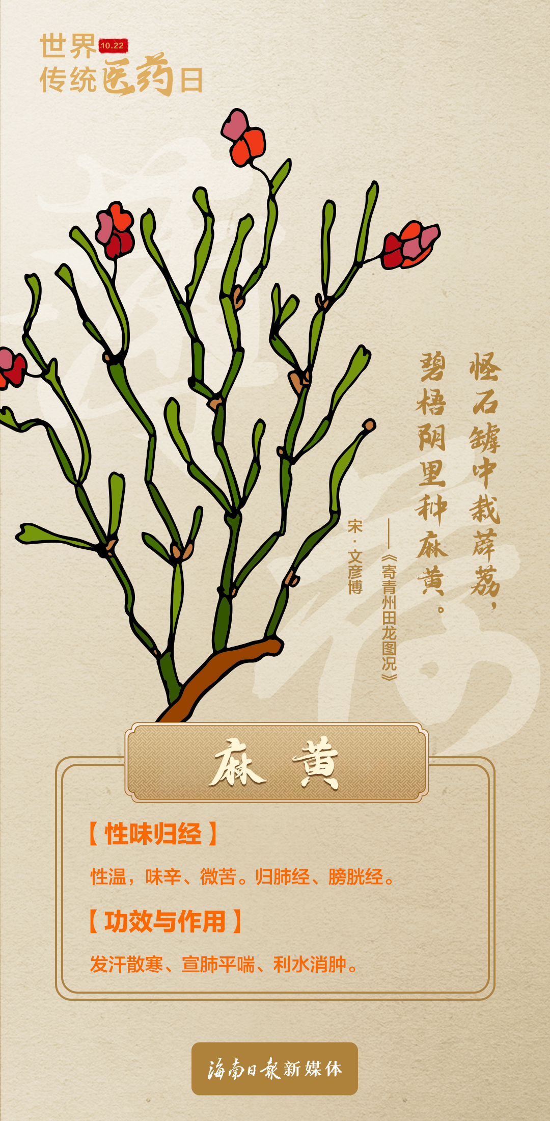 今天是世界传统医药日,当具有药用价值的植物融入古诗词,讲求辩证之道的中医理论也浸染了美妙的诗意,一组海报带你领略那些古诗词里的中药材之美。