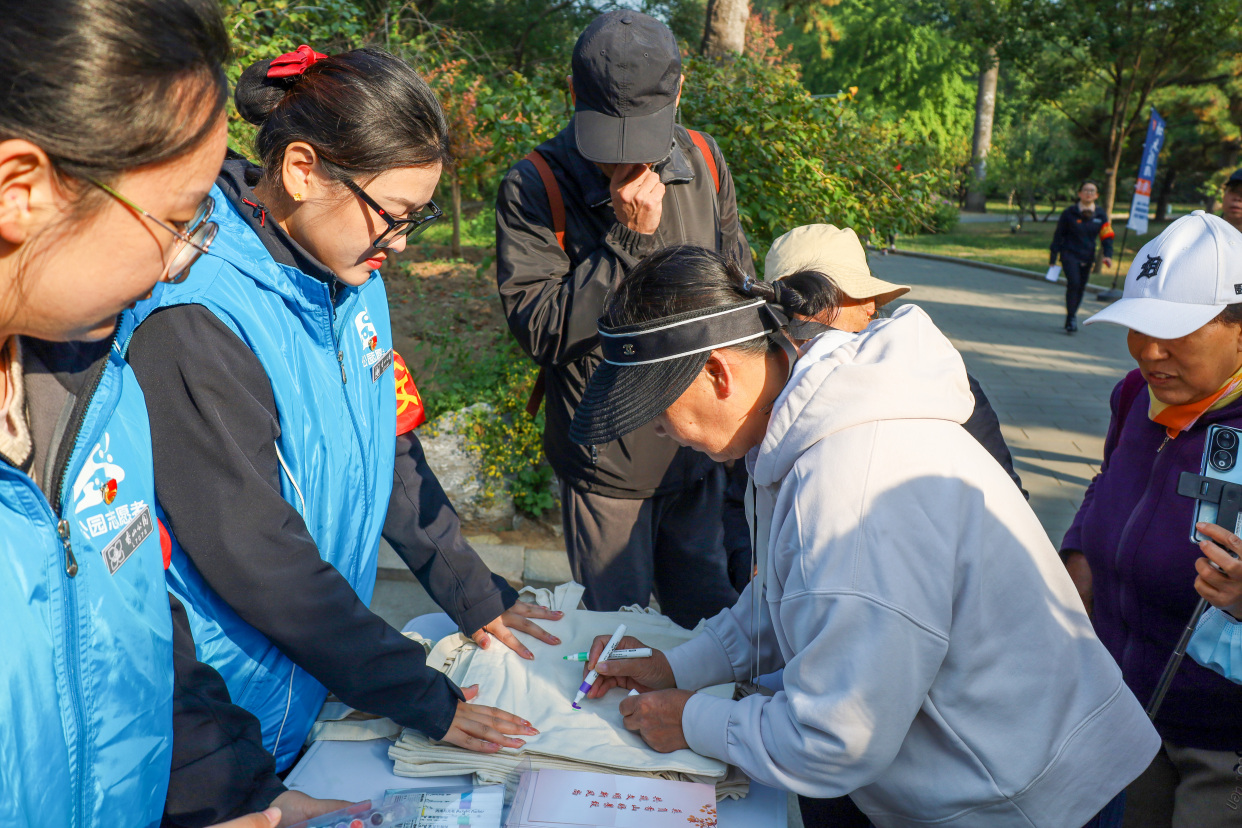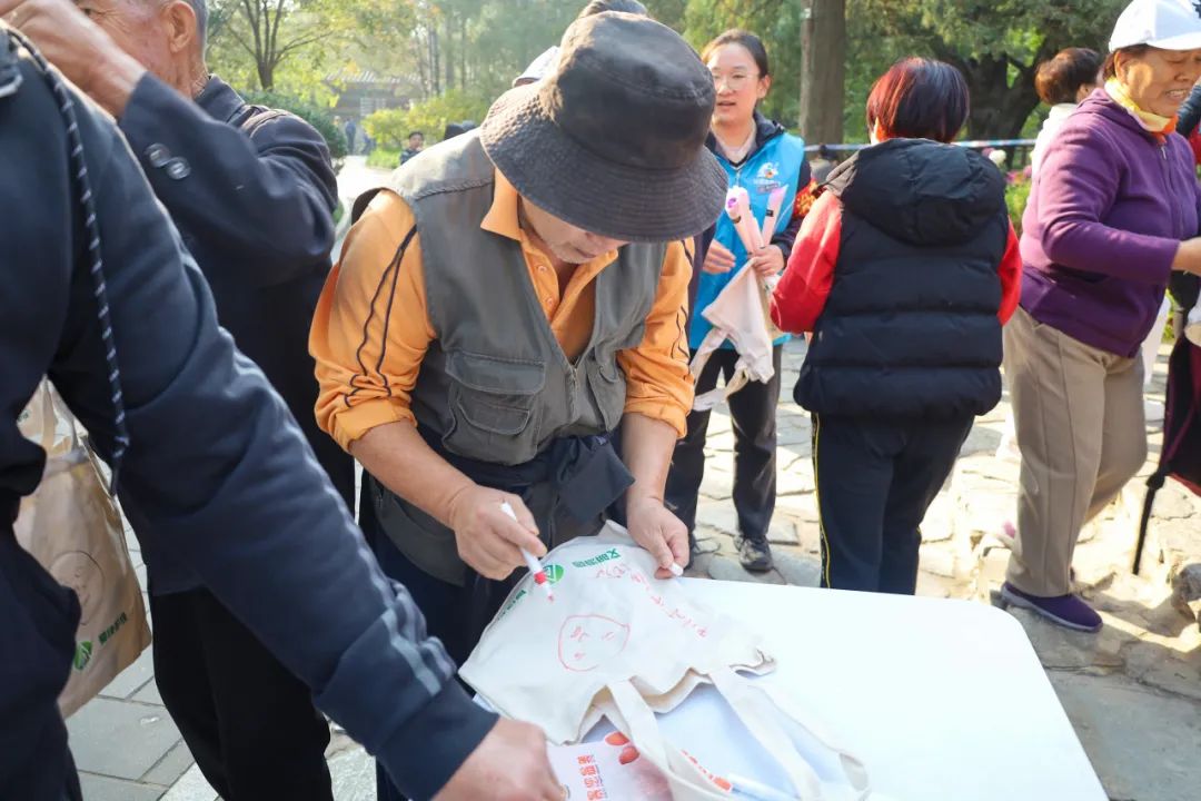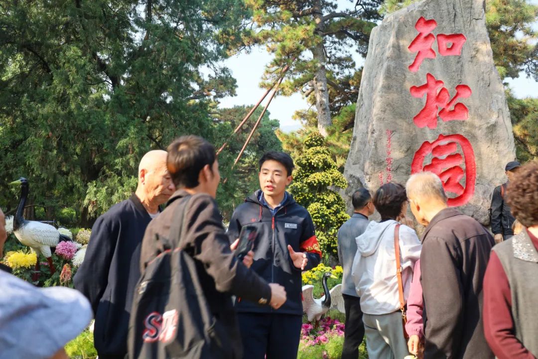 上午,在知松园景区开展“浓情金秋游香山 文明赏景您最美”主题文明游园宣传引导活动,由绿化专业技术人员为游客科普菊花养护知识,讲解重阳登高赏菊传统习俗,发放秋季文明游园宣传折页,推荐赏秋登高路线。邀请老年游客画出香山美景、写下美好心愿,并为银发老人赠送花束,送上真挚祝福。