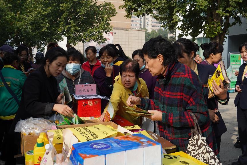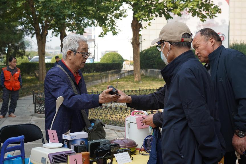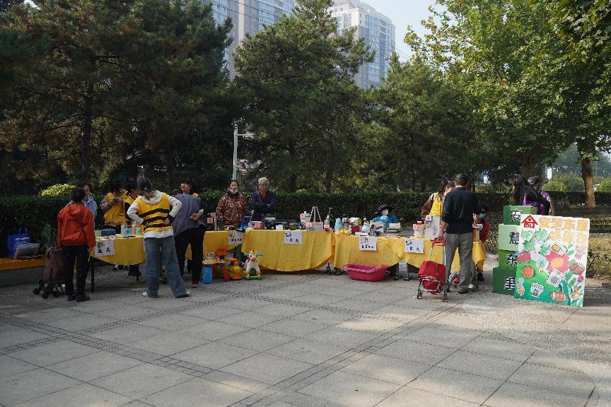 在旧物置换区,联合大学的青年志愿者积极参与现场服务,帮助居民“自由交易”、“以物换物”,让居民们“旧物”找到了“新家”。