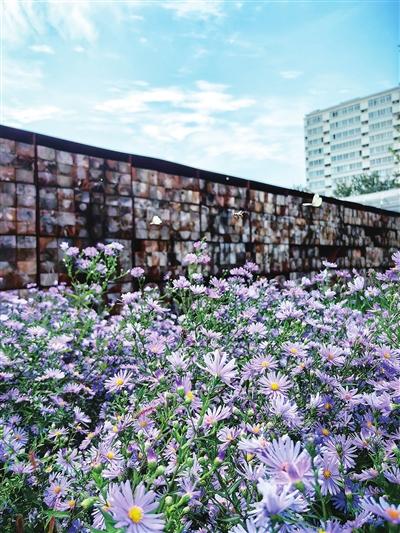 除了紫菀花,此时公园内的八宝景天、柳叶白菀、玉簪花、阳光滨菊、小兔子狼尾草、蓝山鼠尾草开得正盛,入口纪念花园、丘林旱溪花园、铁轨趣味花园、荒野记忆花园……以花园串联起京张铁路遗址公园的A、B、C区,不论从哪个入口进入这座开放的公园,盛放的花草都会让人觉得不虚此行。