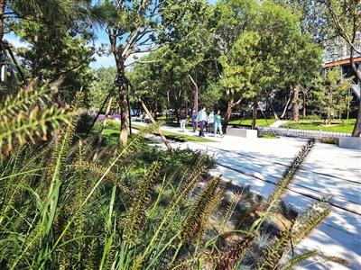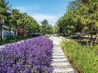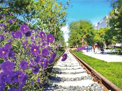 公园中这座横跨北四环的桥,就是参照京张铁路路段中钢架结构铁桥修建的,当夕阳的余晖开始笼罩大地,站在花丛中眺望西山很是浪漫。从过去到现在,再展望未来,京张铁路遗址公园不仅将重塑海淀区城市骨架,还将以绿色公共空间建设带动区域城市更新,推进周边地区城市功能弥合。让城市面貌焕然一新,趁阳光正好微风不燥,让我们踏上这条开满鲜花的铁轨,找寻那段逝去的记忆。(记者 张斌 文/摄)