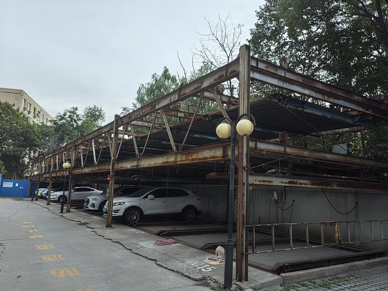 丰桥路甲4号院锈迹斑斑的立体停车库