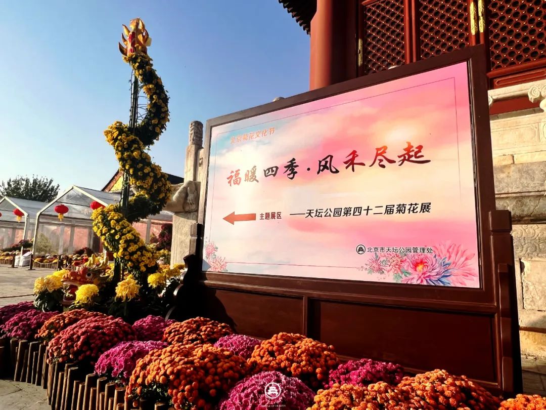 苔红叶遍,金菊开时,正是岁岁年年多情。10月27日,天坛公园第42届菊花展“福暖四季,风禾尽起”在祈年殿景区内南侧开展。
