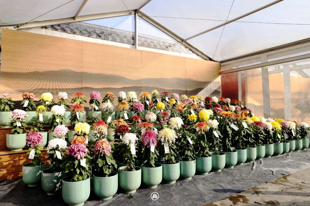 祈年门东面展区则更是本年度菊展的重头戏,在“大立菊”、“立菊”、“菊花盆景”、“精品品种菊”几大展棚之中,“帅旗”、“瑞雪祈年”、“太真含笑”等绝色菊花品种,也在此与大家瑶台相逢。