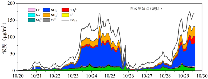 北京市城区和边界站点PM2.5组分时序变化(数据来源:北京市生态环境监测中心)