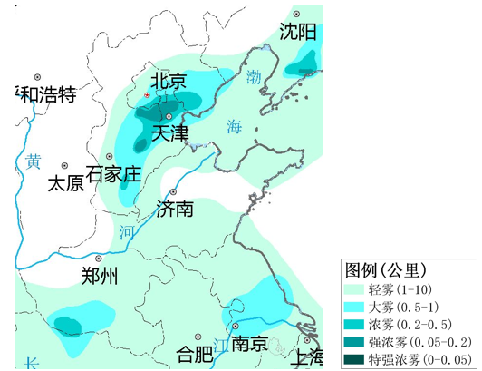10月29—30日京津冀及周边地区雾预报图(来源:中央气象台)