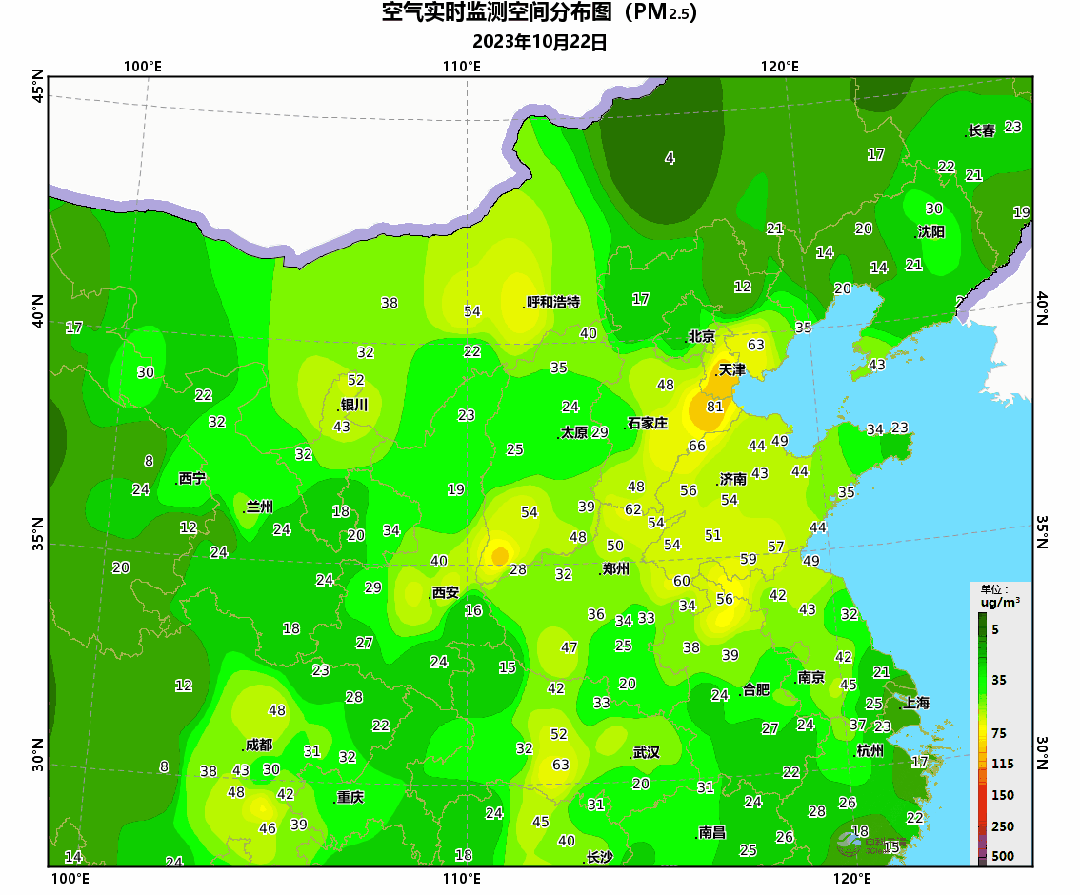 2023年10月22—29日全国PM2.5浓度逐日变化情况(来源:中国环境监测总站,河南省生态环境监测和安全中心)