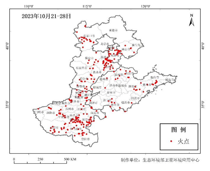 10月下旬以来京津冀及周边地区火点分布(来源:生态环境部卫星环境应用中心)