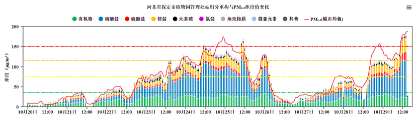 天津、保定、菏泽、周口PM2.5组分时序变化(来源:中国环境监测总站)