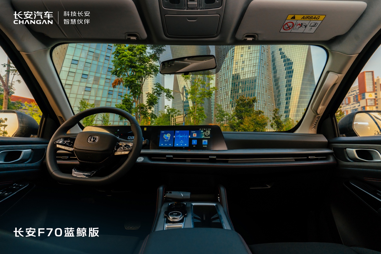 在车内配置上,长安F70蓝鲸版搭载了镜湖式智慧双联屏,一体式12.3英寸中控彩色大屏可以带来湖天一色的视觉观感,8.1°的弧度设计不仅符合人类视网膜弧度,更彰显出人性化的驾驶关怀。