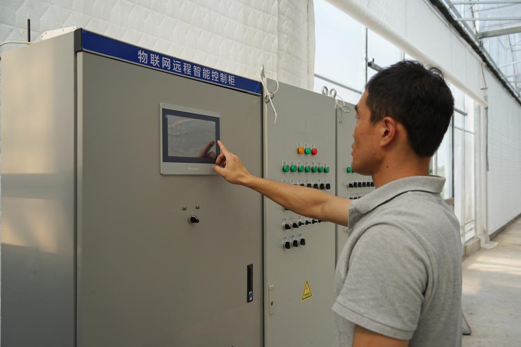 10月30日,慈溪大植天使生态农场内,工作人员通过物联网远程智能操控系统查看大棚内各项指标数值,对大棚内相关设备开关进行控制。新华社记者林光耀 摄
