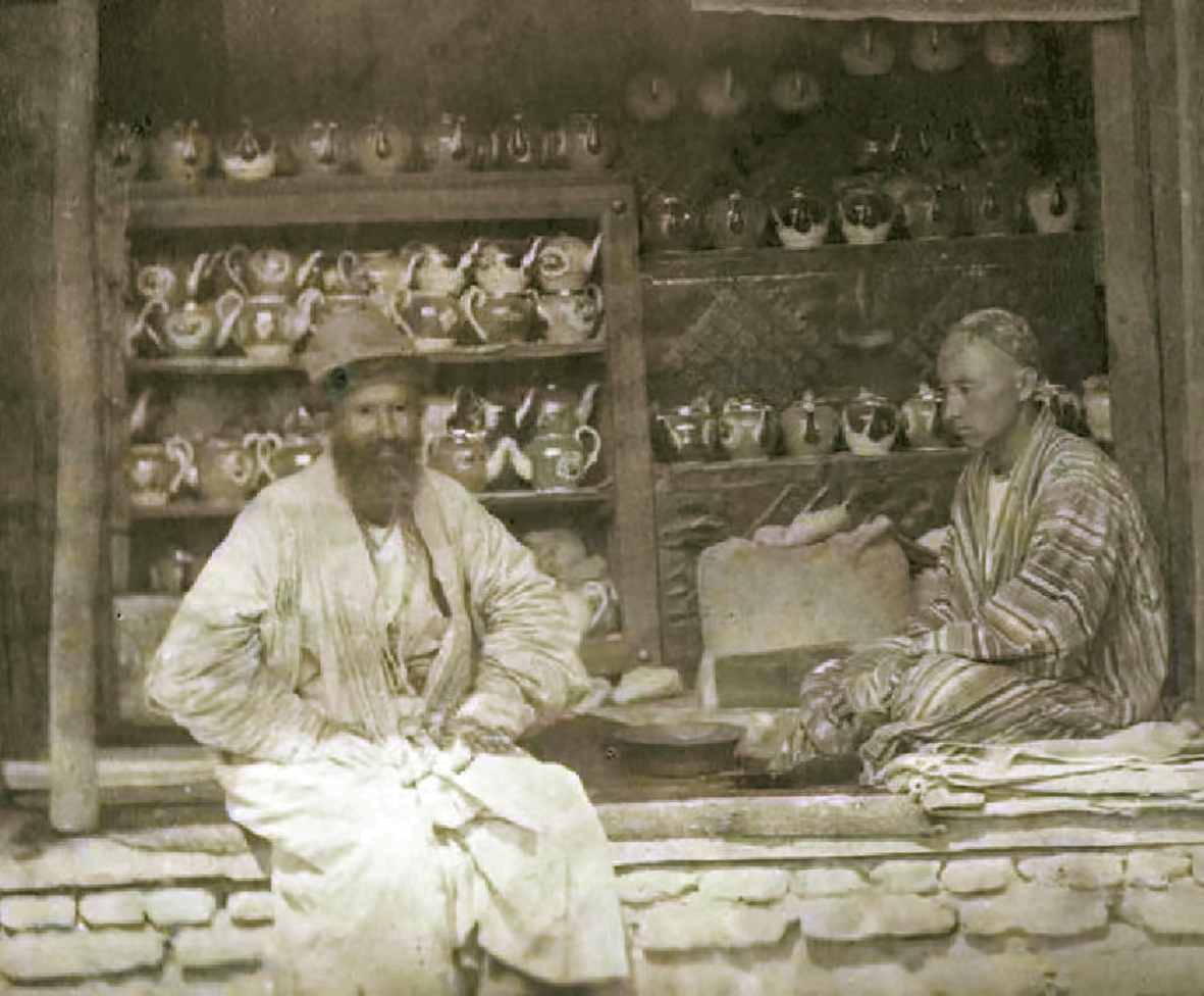 十九世纪六十年代,沙俄帝国在中亚取得控制权后(之前,这些地方还是大清的“属国”,见《清史稿·列传三百十六·属国四》),在沙俄驻土耳其斯坦(沙俄给中亚这块属地的名称)首任总督康斯坦丁·考夫曼(1818–1882)将军的赞助下,两位俄罗斯东方学者和摄影师共同编纂了一部《土耳其斯坦相册》。相册包括照片、手绘的建筑平面图、地图等多达1200张照片。这部相册,全方位地记录了俄罗斯未来之前中亚的伊斯兰风格的城市、乡村和建筑。茶的照片尤多。其中一张中,两位茶贩坐在自己的铺面向路人兜售茶叶与茶具,让人印象尤深。稍后,大约1910年前后,俄罗斯摄影家谢尔盖·戈尔斯基应用特殊的彩色摄影方法,留下了一张罕见的撒马尔罕的茶室彩照。这张彩照,记录了撒马尔罕茶之于这个城市的重要。