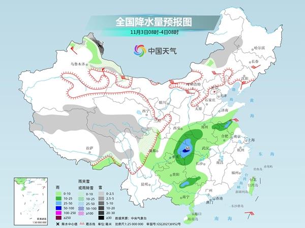 后天,内蒙古东部、新疆北部、西藏北部和东部、青海中南部、川西高原北部等地部分地区有小到中雪,其中,新疆阿勒泰地区等地部分地区有大到暴雪;陕西南部、四川东部、重庆中东部、湖北西部、河南西部、安徽北部、江苏北部、广西北部等地部分地区有中到大雨,其中,湖北西部、重庆东北部等地部局地有暴雨。