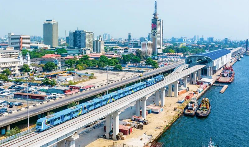 设施联通是共建“一带一路”的优先领域。尼日利亚拉各斯轻轨蓝线项目一期是西非第一条由中国企业自主设计、建造、施工、运营的电气化城市轻轨交通项目。图为2022年12月21日拉各斯轻轨蓝线上的一列轻轨列车。 新华社发 托普·阿尤库/摄