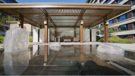 在建筑形态上,天坛府以中轴线为根本,汲取北京故宫三大殿之一太和殿庑殿顶设计理念,传承中轴对称礼制和天坛皇乾殿三段式建筑结构,通过历久弥新的石材立面与金属板结合,打造当代新中式建筑之美,将大国礼制文化气韵尽藏其中。