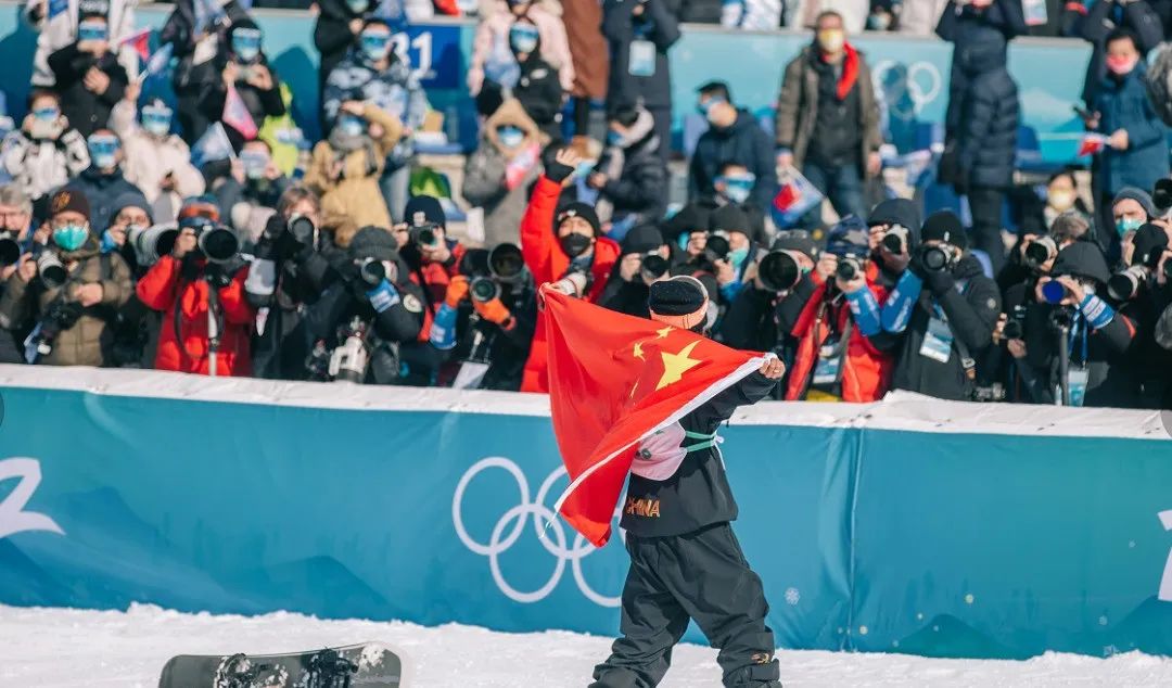 2022年2月,北京冬奥会单板滑雪男子大跳台项目中,中国选手苏翊鸣夺冠