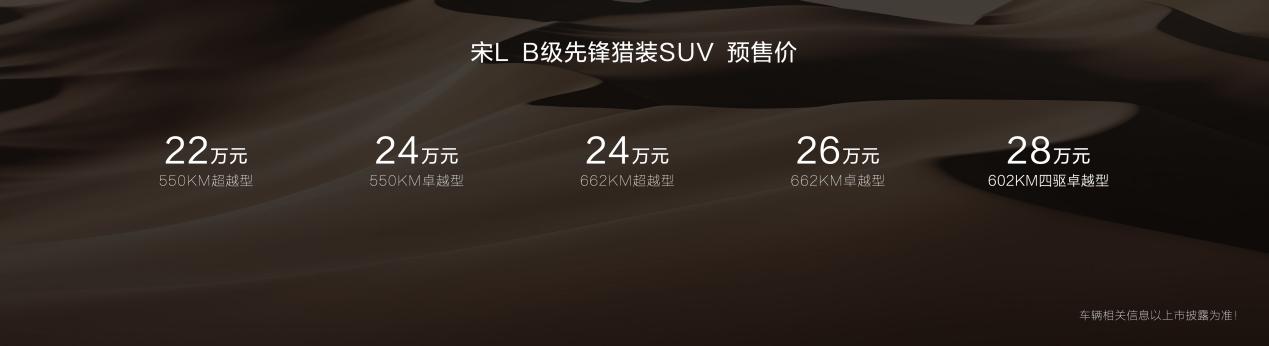 10月31日,比亚迪宋L正式开启预售,发布了5个款型,包括4款后驱版本以及1款四驱版本,预售价格22万-28万元,同时带来了五重预售权益。
