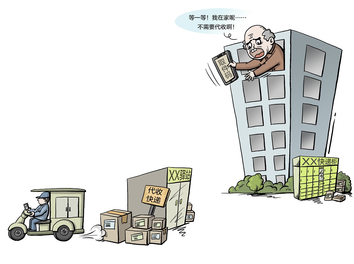 正值购物高峰,有些消费者,尤其老年消费者,希望快递能投送到家,却总被通知快递投到了驿站。